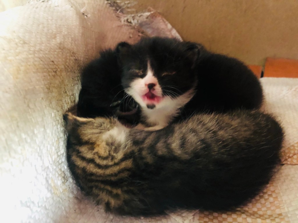 Students were focusing on their learning when we were continually interrupted by the low -pitched sound of kittens. We thought that the kitten mewing sound is coming from the nearby fields. With time we allocated the origin of the sound and recognized it coming from the balcony closet. I approached the closet cautiously and slowly. I opened it to be choked by the presence of the three kittens pictured above. I called my students to join me and observe these beautiful creatures.