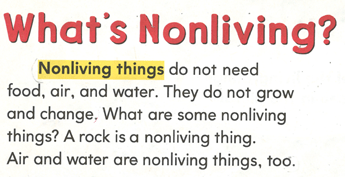 Zayd related this to his science lesson. He studied this year about Living things and non -living things and this is the definition of Non- Living things in his Fusion Book!