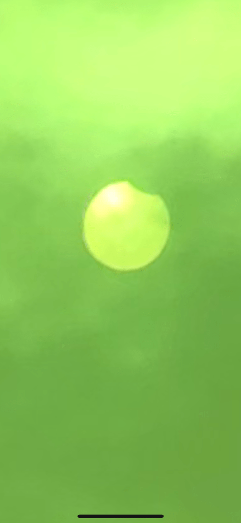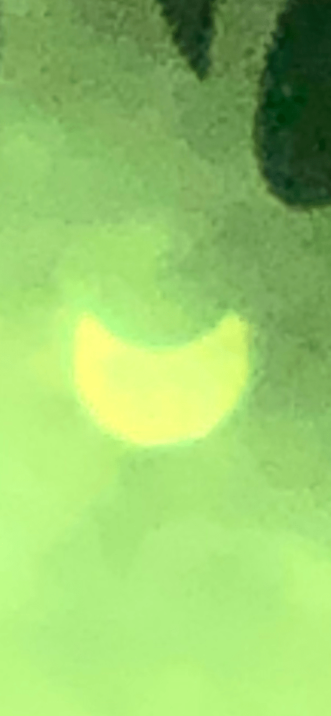 Solar Eclipse as viewed in Lebanon at 2:03 pm on Tuesday, October 25, 2022 According to the NASA, partial solar eclipse takes place when the sun, moon and Earth are not exactly lined up. (NEVER look at the sun during any type of solar eclipse! Looking at the sun is dangerous. It can damage your eyes.)
